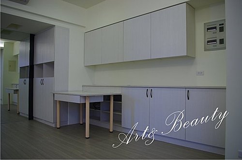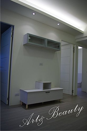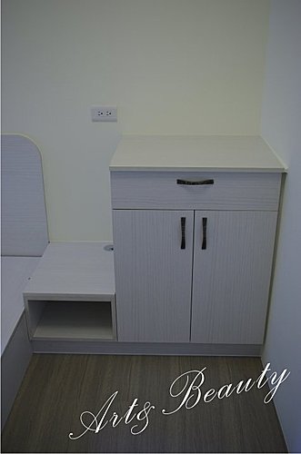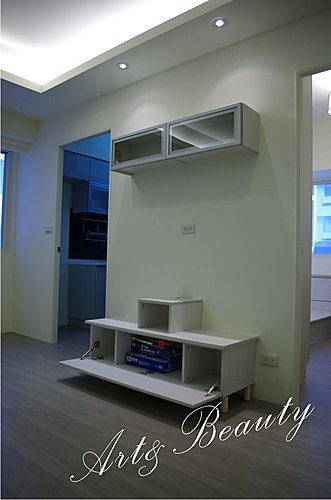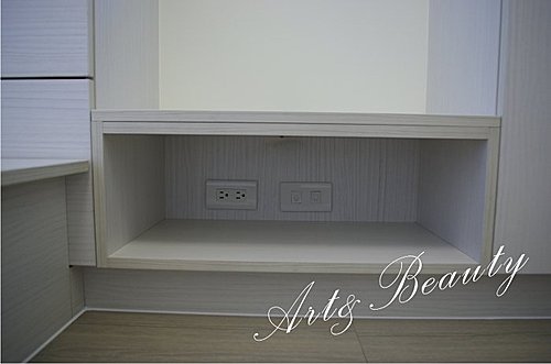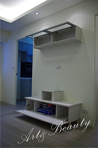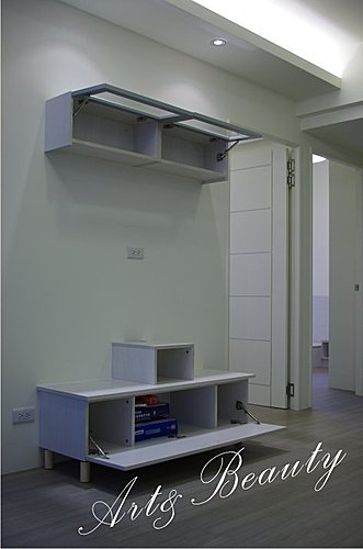從下一張照片可以看到下方矮櫃內部用2片活動隔板分成3層.