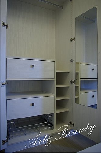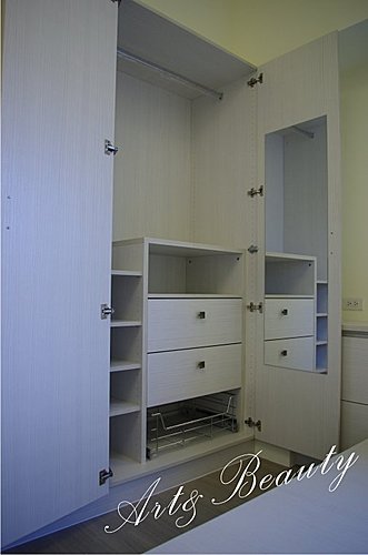 內裝可以看到抽屜拉籃開放櫃與層板.