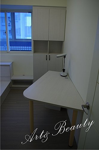 書桌前的開放櫃則是用來放置屋主為數不少的資訊與網路設備.
